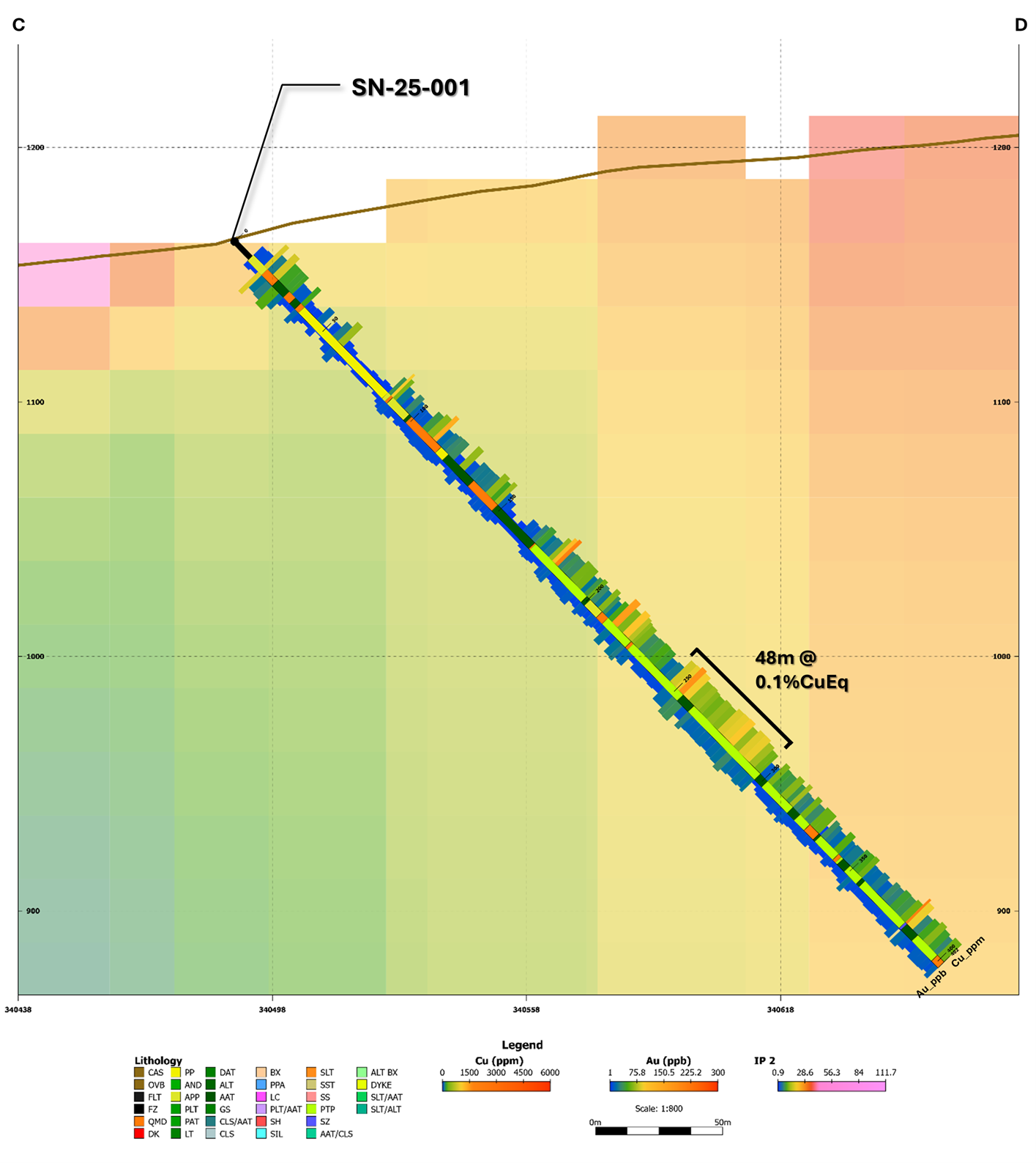 Figure 3- Star North DDH SN-25-001 Drill Results C-D Cross Section. Star Copper 2026