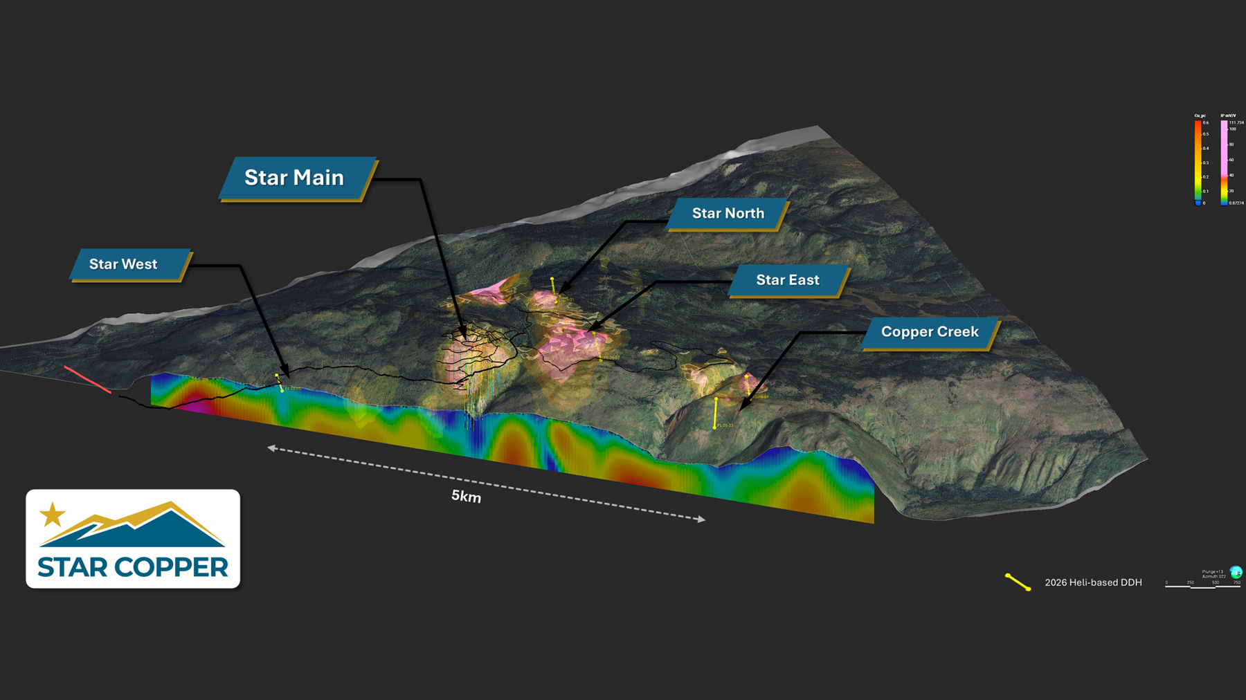 Company CEO Darryl Jones notes, “With over $12 million in flow-through capital in place, we are fully funded to execute our planned objectives aimed at delivering a maiden resource estimate this year. The planned 3D IP and MT surveys will enhance our understanding of the system at depth and significantly aid in vectoring towards the core of the porphyry system. With a multi-target drill program of this proposed scale, we are aggressively positioning Star Copper as we head into 2026. We are excited to begin systematically drilling across this intriguing range of high value prospects offering strong potential to host Star Main-style mineralization.