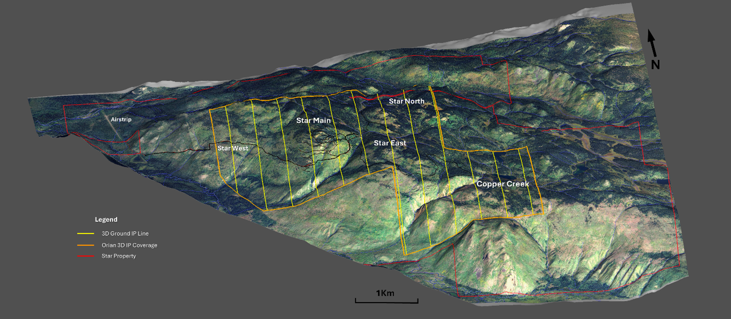 Results from the ORION survey will be fully integrated into the Company’s evolving three-dimensional geologic model and are expected to directly inform drill targeting, hole orientation, and depth selection for a planned aggressive 2026 drill program. By identifying deep-seated chargeability and resistivity anomalies associated with potential intrusive centers and mineralized feeder structures, the Company aims to prioritize high-impact drill targets capable of materially advancing the scale and quality of mineralization at the Star Project (See Figure 1 to view the proposed survey plan).
